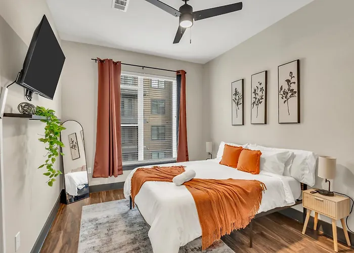 Nestled in the vibrant heart of Austin, the 1Br Alongside Q2 And Domain With Pool, Gym, And Free Parking offers an idyllic escape for business travelers and holiday makers alike. With its contemporary aesthetic and attention to detail, this apartment is designed to provide an inviting environment. Guests will find themselves immersed in luxury as they unwind by the resort-style pool, maintain their fitness regime in the fully equipped gym, or relax in the spacious living area after a day of exploring. The accommodations at 1Br Alongside Q2 And Domain with Pool, Gym, and Free Parking Apartment boast modern furnishings and intelligent layout that encompasses a cozy bedroom, a stylish bathroom, and an open-concept kitchen. In each room, guests enjoy ample natural light, creating a warm atmosphere that enhances relaxation. The apartment features amenities that provide both comfort and convenience, ensuring a restful stay.